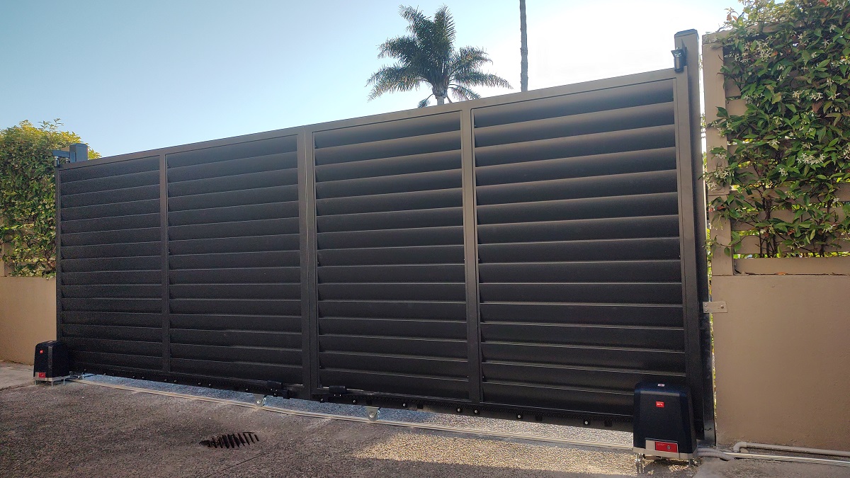 We build with a Louver aluminum sliding gate. We use two automation systems; the gate can open separately to each side.